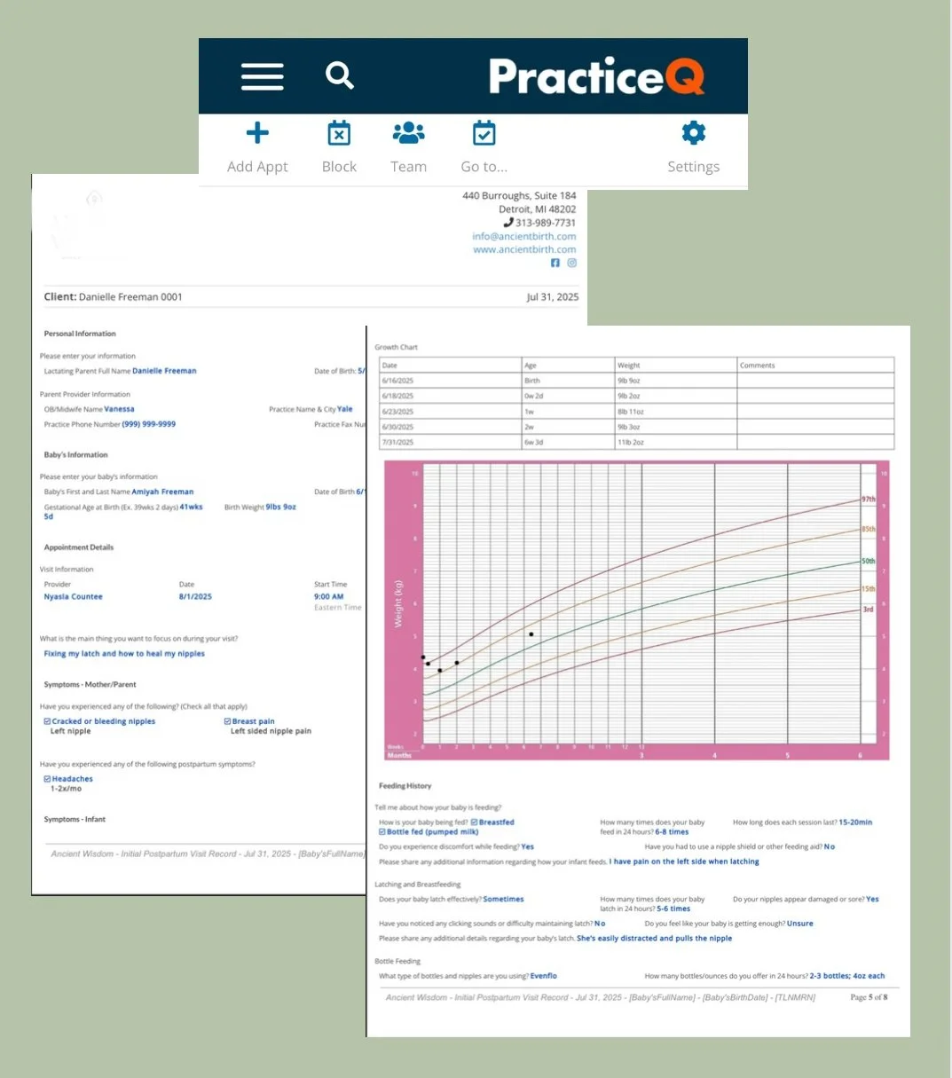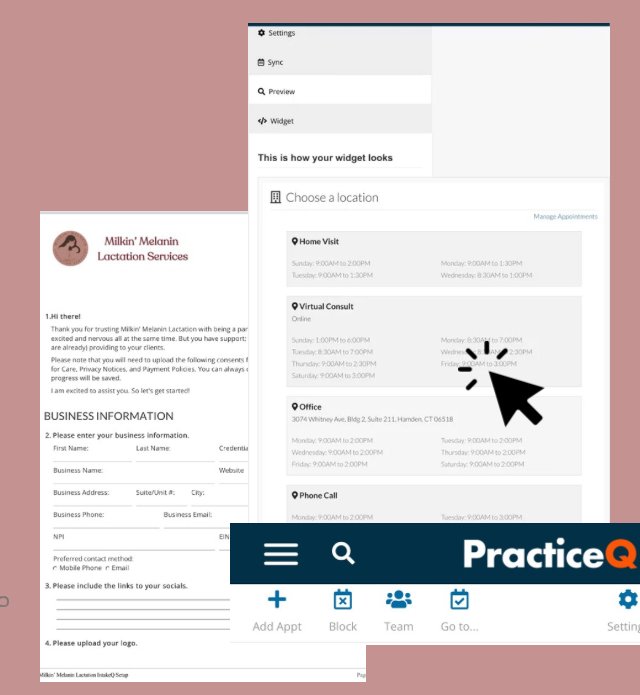 • Streamline your practice with a customized PracticeQ setup designed specifically for lactation consultants and those offering both lactation and doula services. This service includes intake forms, client notes, scheduling, and workflows so you can focus on supporting families while IntakeQ runs smoothly in the background. This setup saves you hours of administrative time and ensures your practice is professional, efficient, and client-friendly from day one.